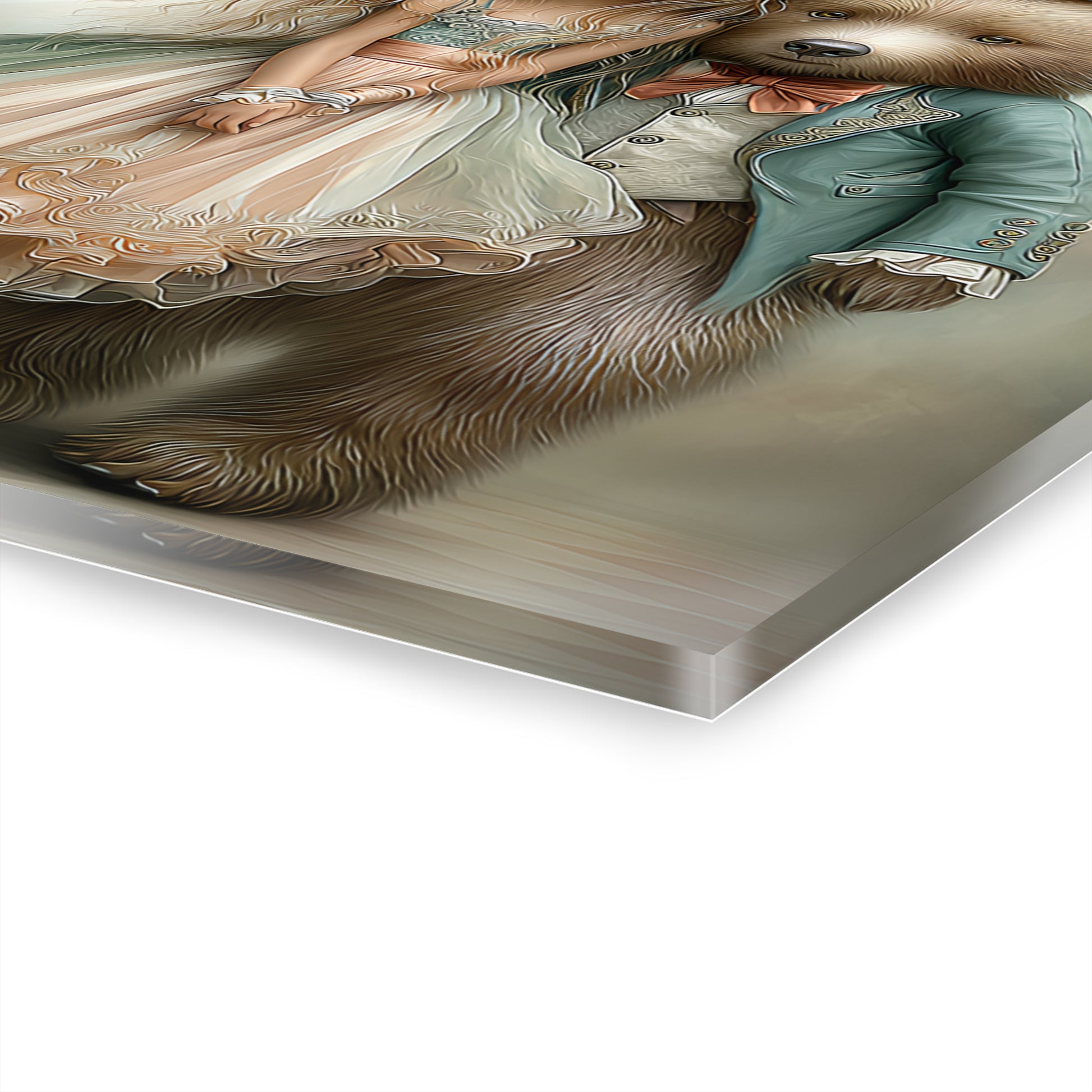 Whimsical girl and enchanting bear image printed on high-quality acrylic, perfect for framing. Ideal for gifts for any holiday, with a small enchanting poem next to the images on the horizontal frames only. 2 differently styles to choose from. Fits well in any home decor setting.
