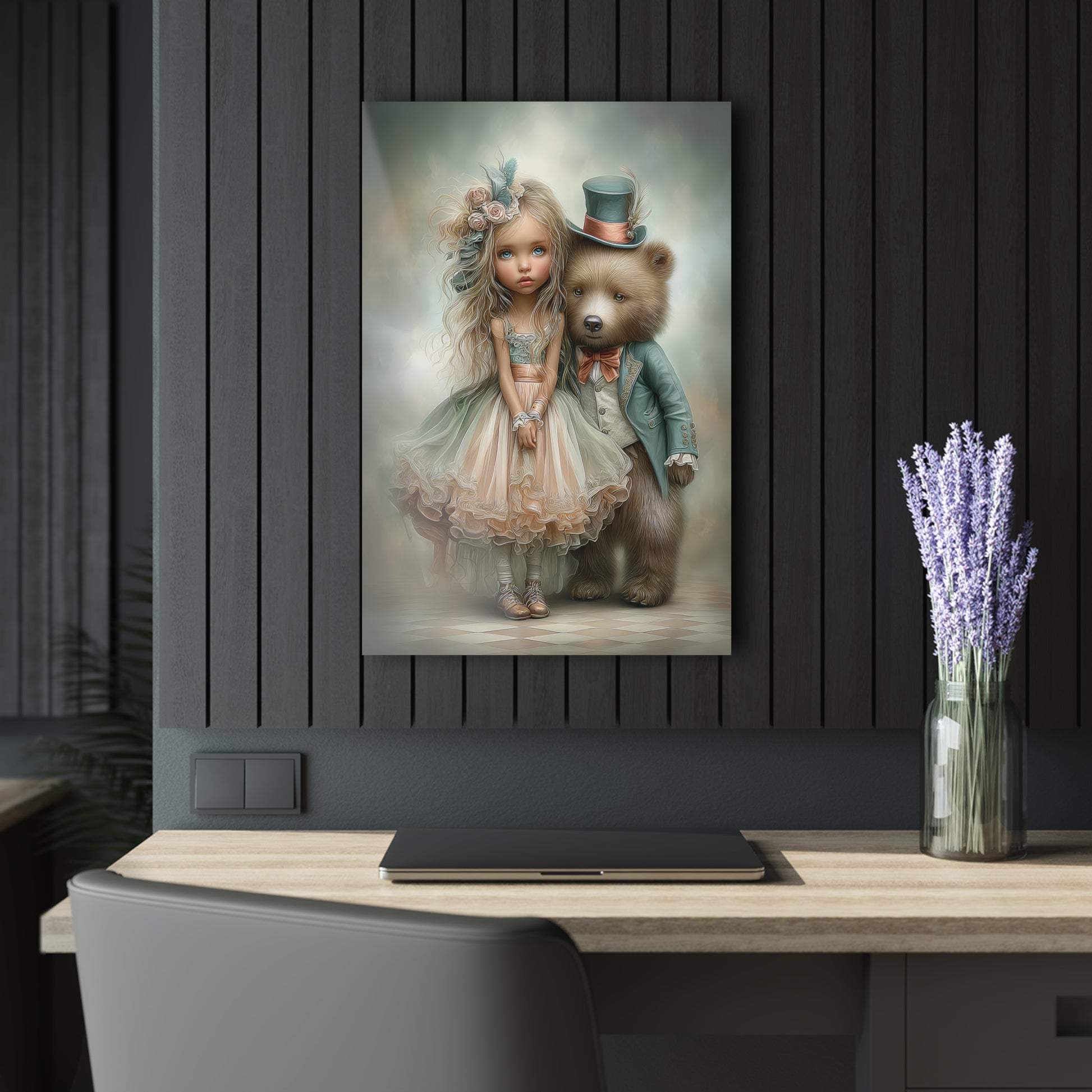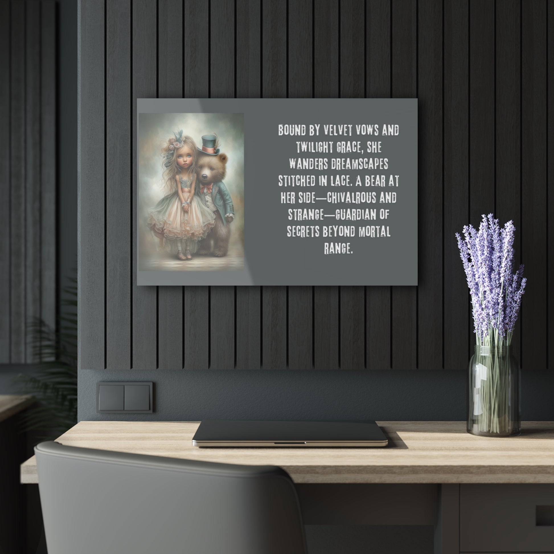 Acrylic Prints - Whimsical Girl and Bear French Cleat Hanging Frame with Enchanting Poem on the Horizontal Frames only.