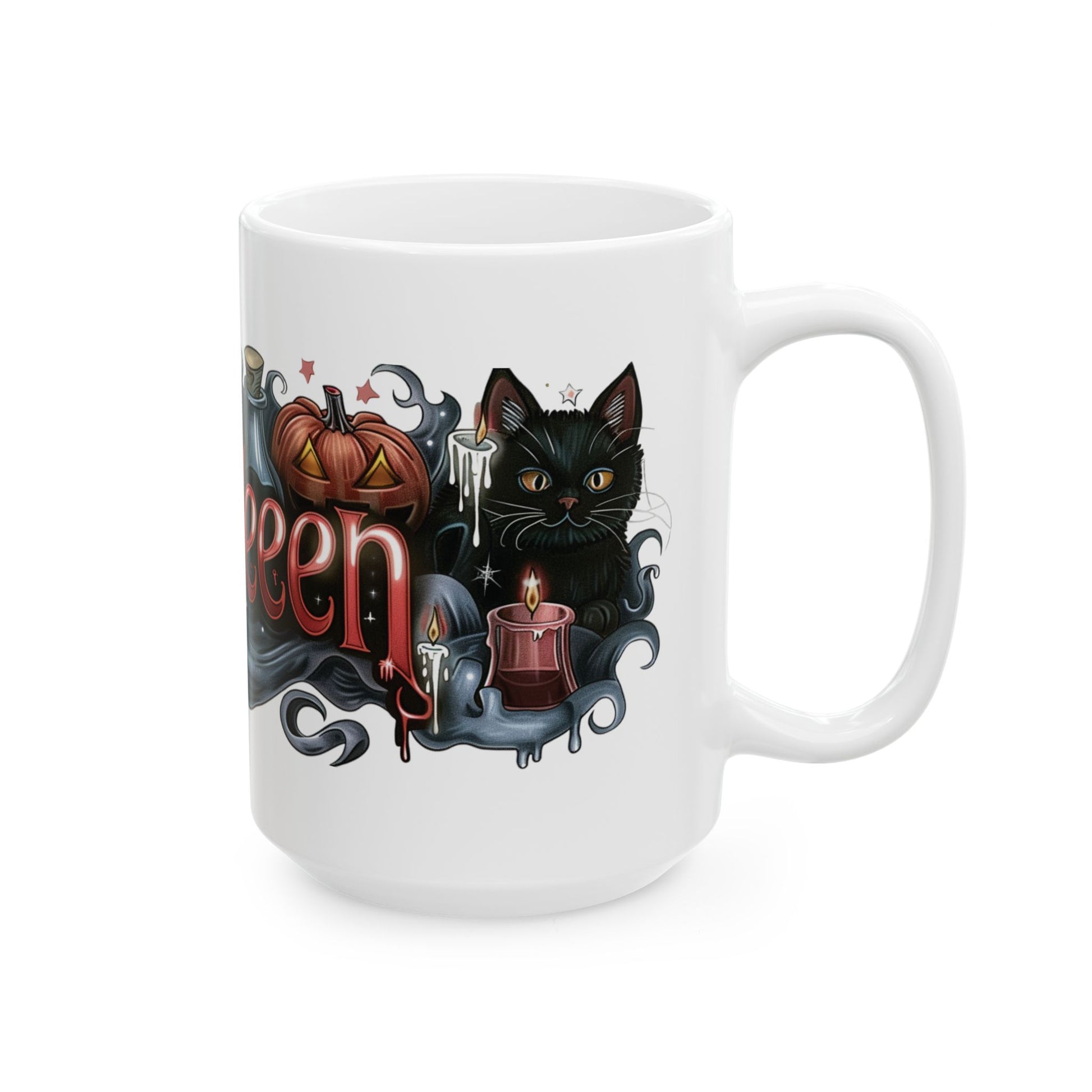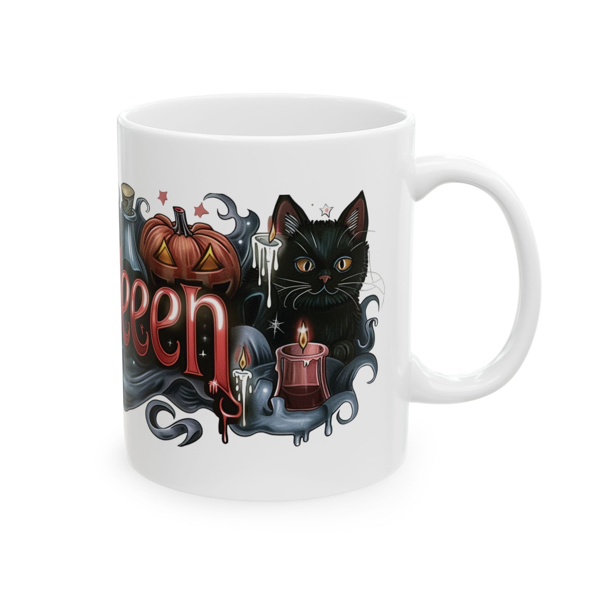 Spooky Kawaii Halloween mug that brings a fun and cute vibe to your morning coffee routine. Perfect for Halloween enthusiasts or anyone who loves kawaii designs. Great for celebrating Halloween or adding a touch of whimsy to your day.