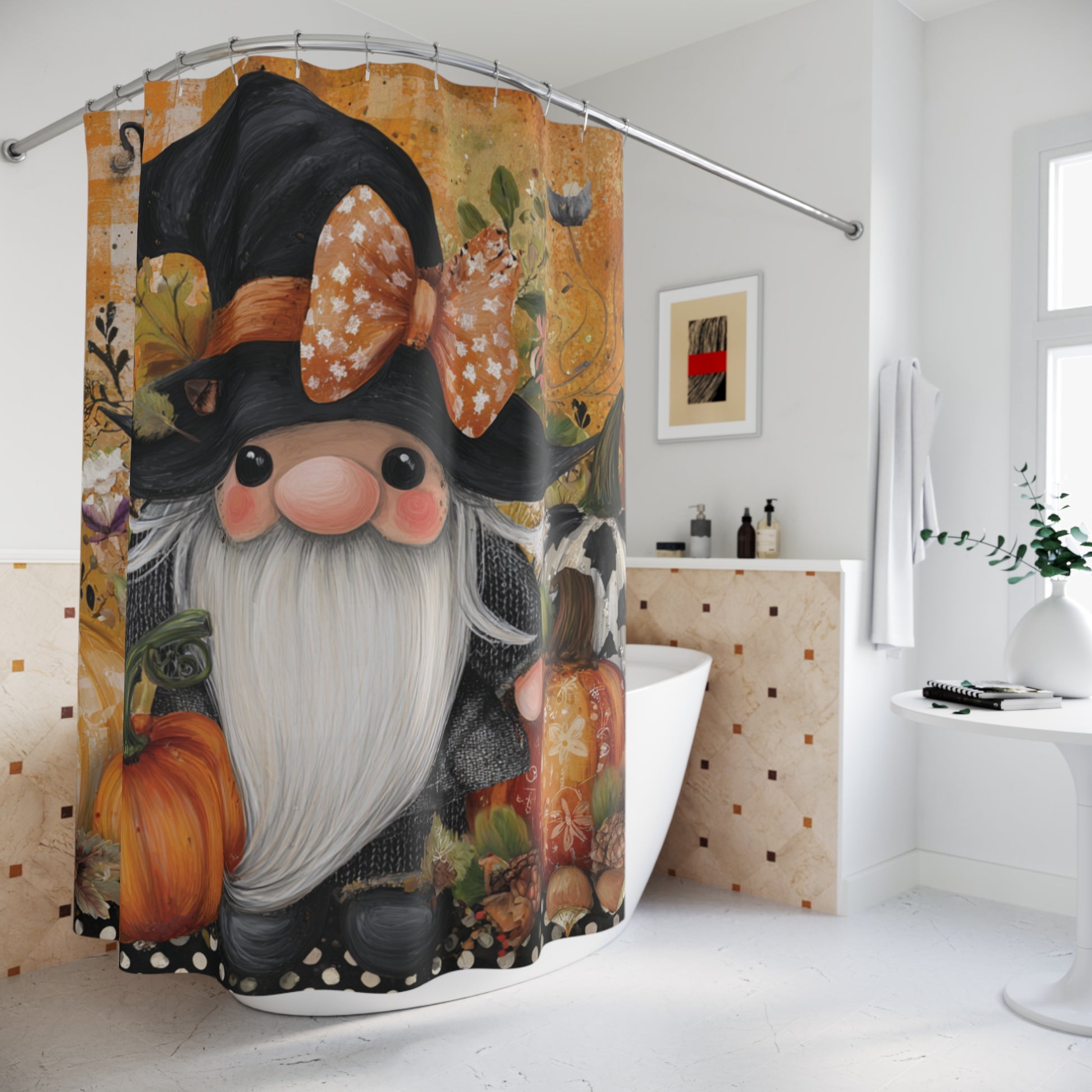 Charming Pumpkin Gnome Shower Curtain - Fall Decor, Halloween, Autumn Vibes, Witchy Bathroom, Seasonal Home Decor