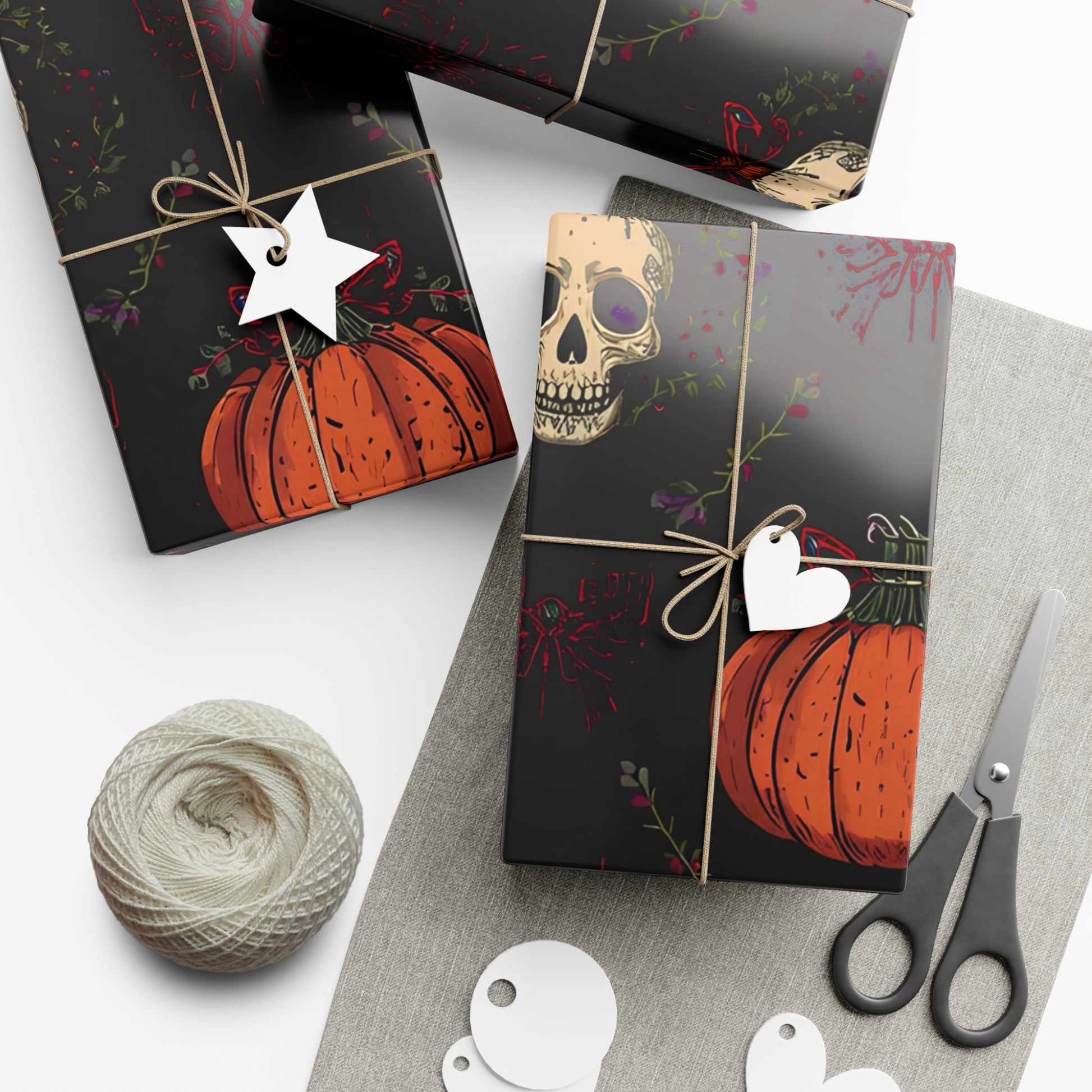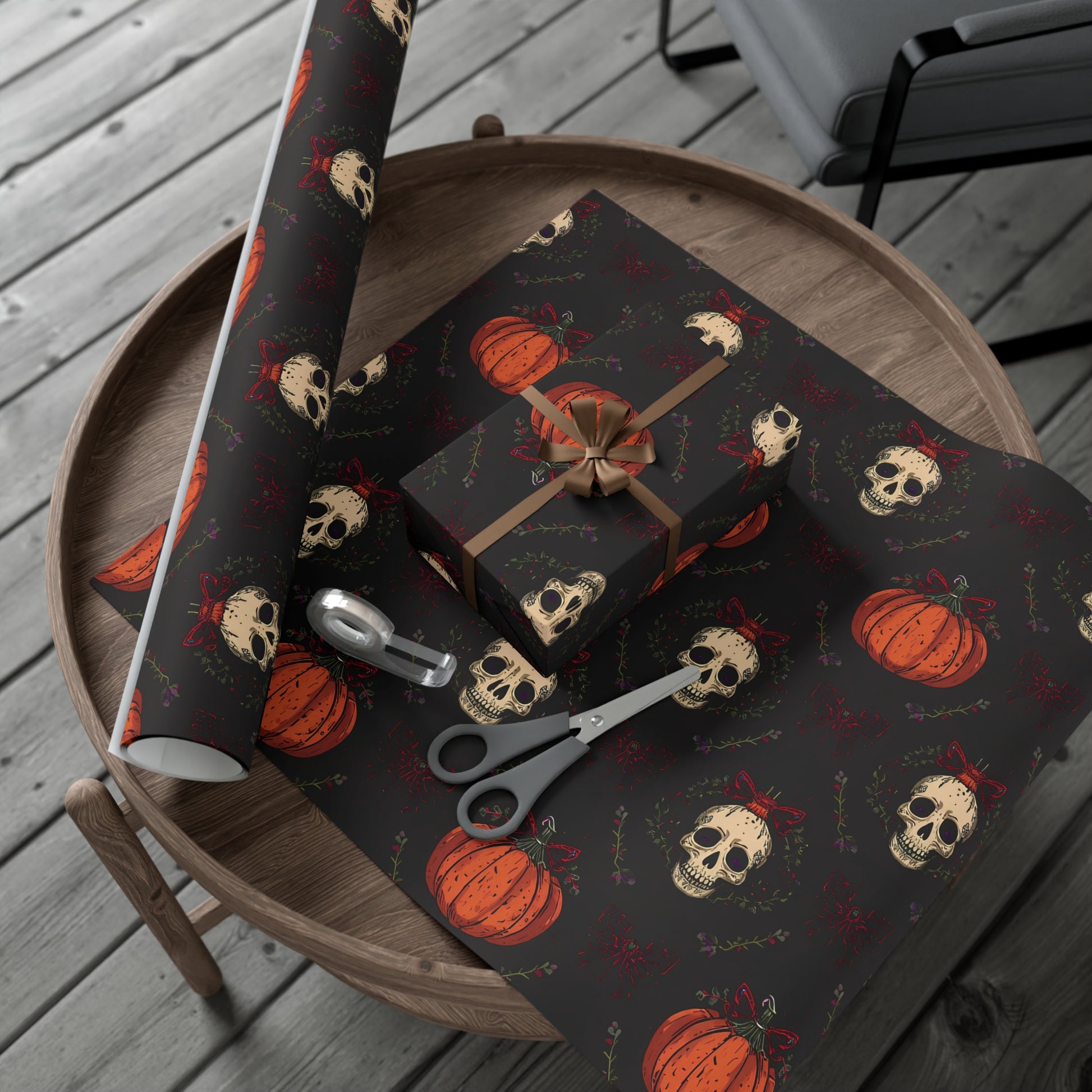 Hollyween Christmas Wrapping Paper – Gothic Holiday Gift Wrap with Skulls, Pumpkins & Bows