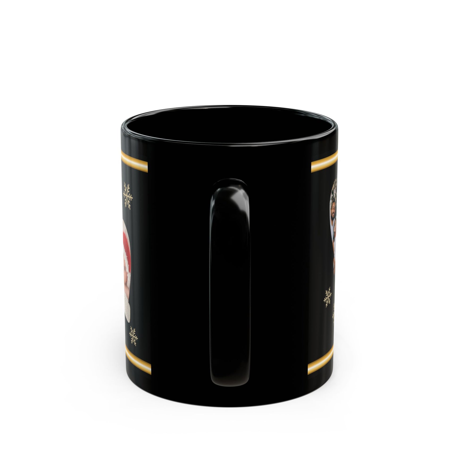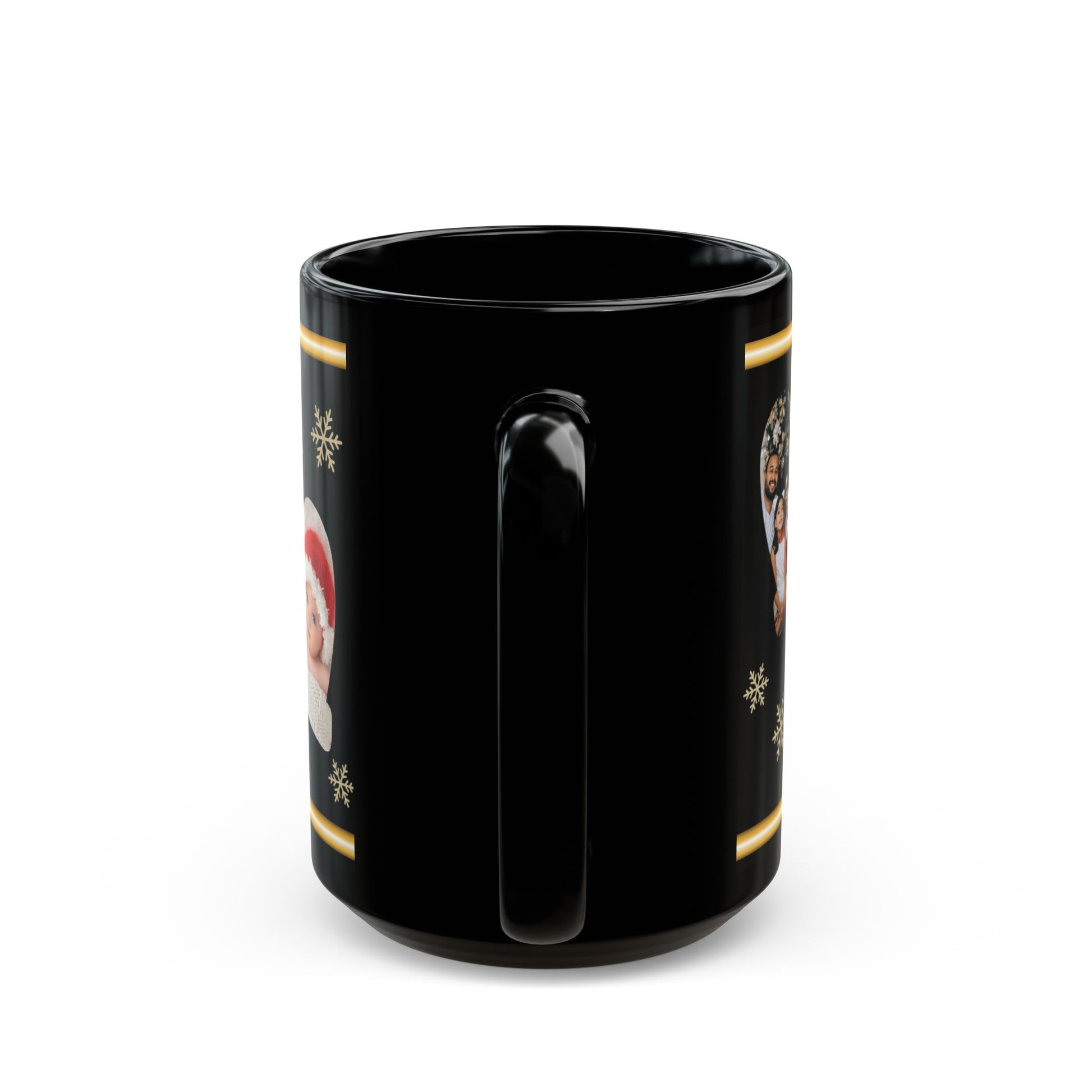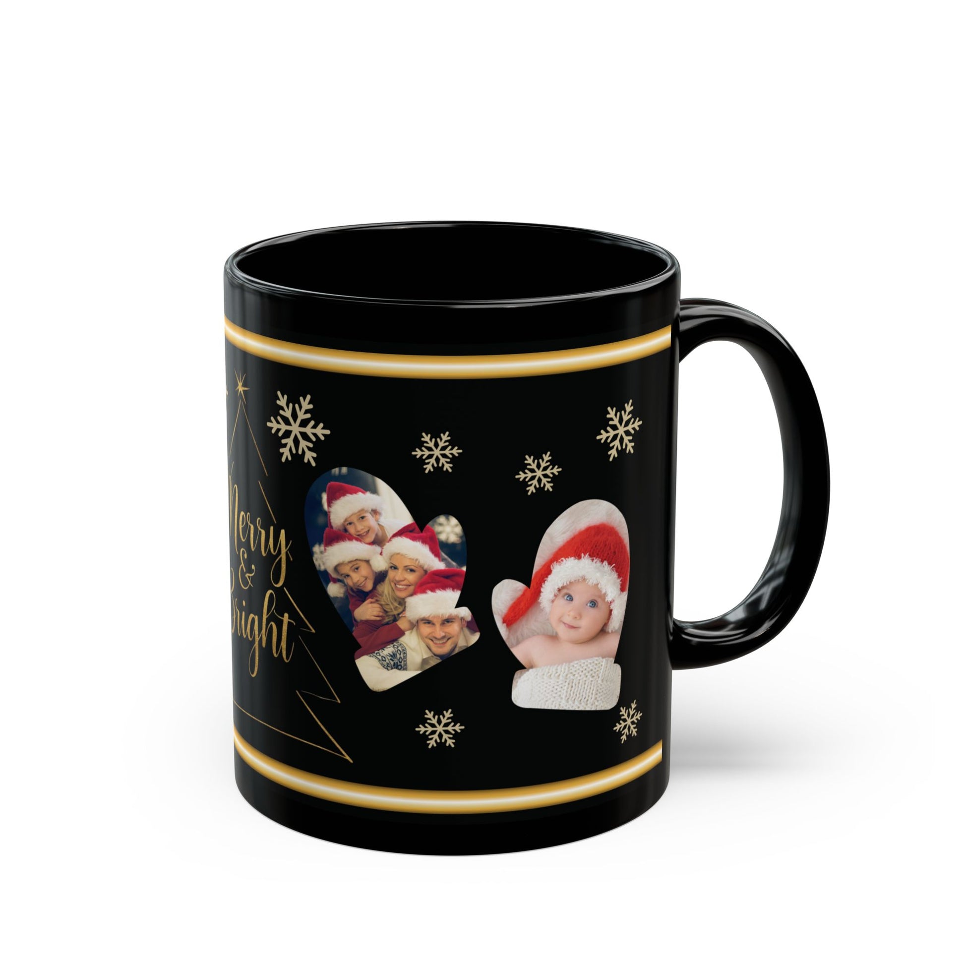 Elevate your coffee or tea experience with this personalized Christmas photo mug. The glossy black ceramic finish and foil-inspired gold trim create a luxury holiday vibe, while mitten-shaped photo frames let you add your favorite pictures for a one-of-a-kind keepsake. Perfect for cozy winter mornings, Christmas gatherings, or as a thoughtful gift for family and friends.