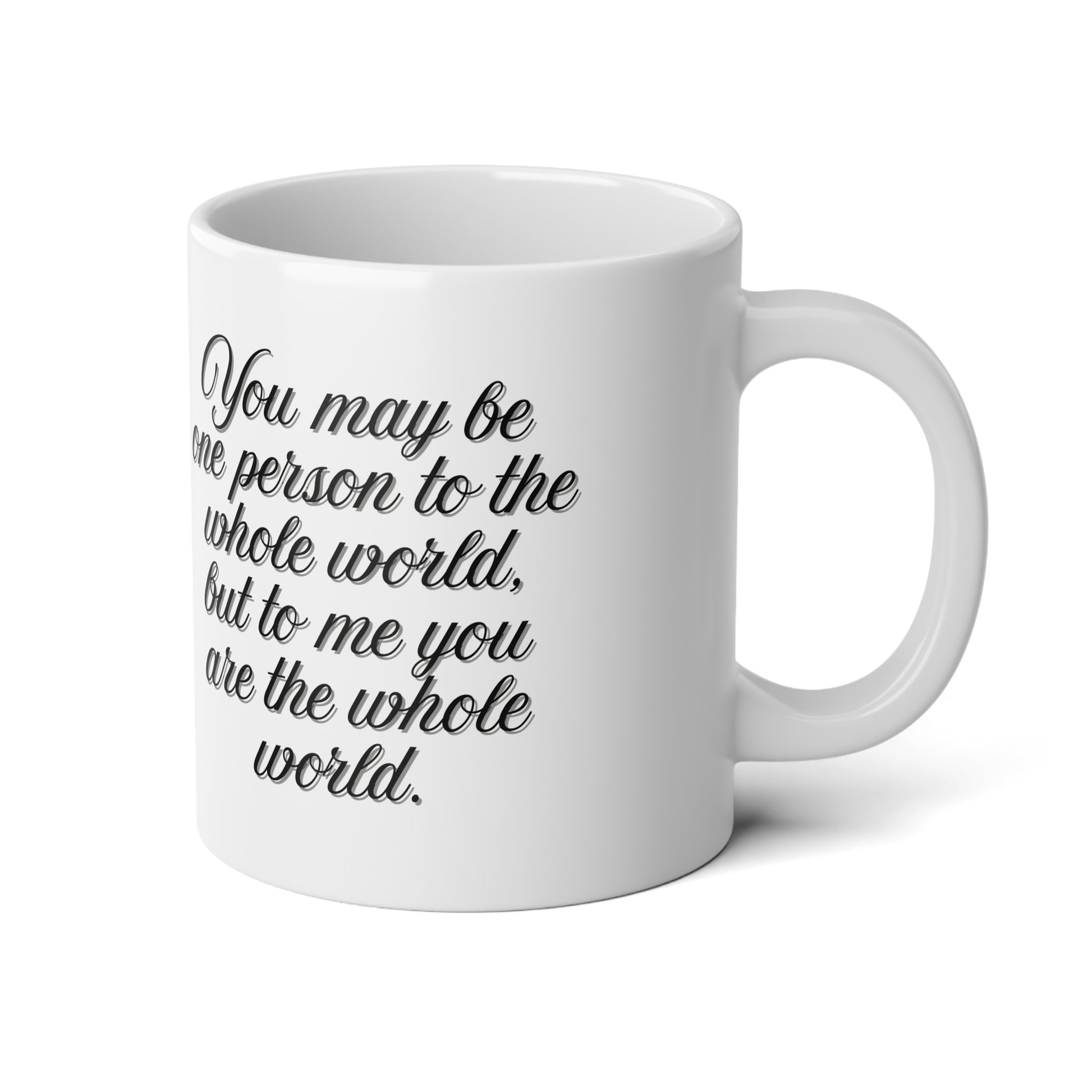 Celebrate Fathers Day with a jumbo 20oz personalized photo heart mug. Add a family or child photo along with name and date to create a keepsake he will treasure. The design features the quote You may be one person to the whole world but to me you are the whole world making it a meaningful gift for dads of all ages.