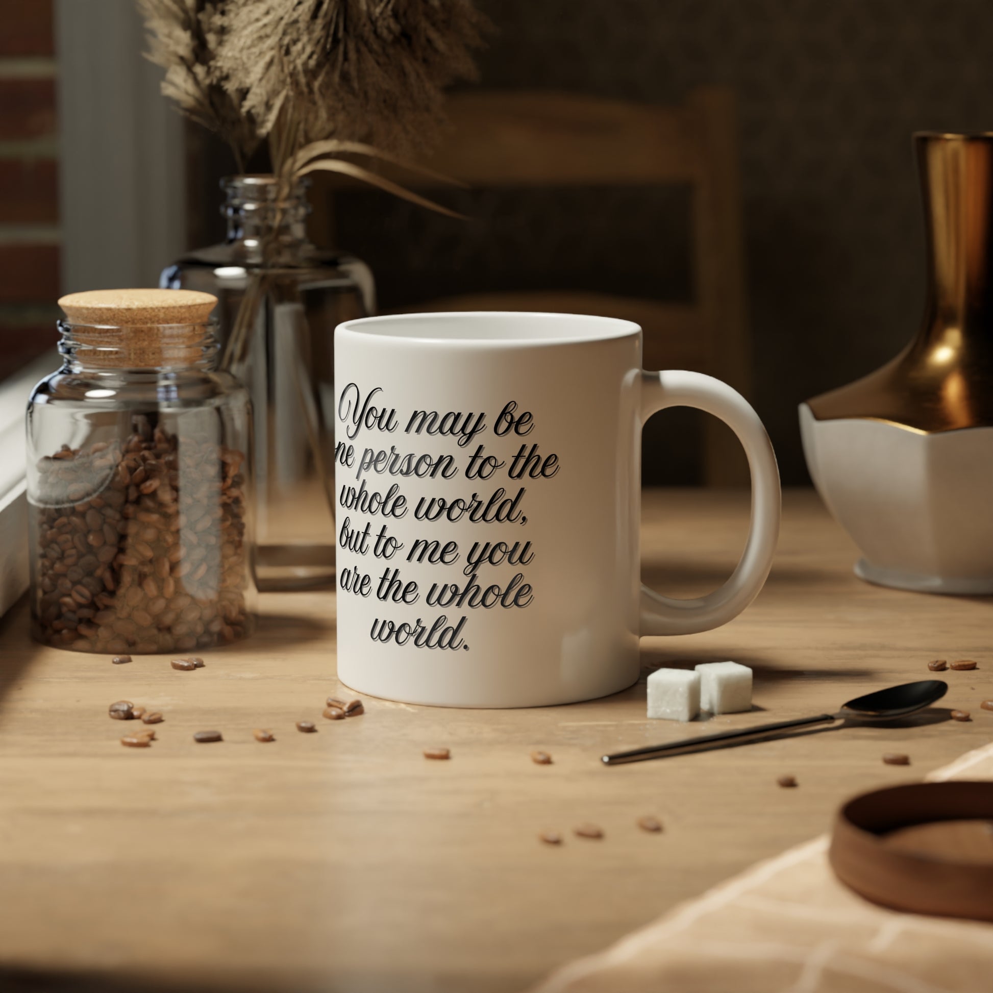 Celebrate Mothers Day with a jumbo 20oz personalized photo heart mug. Add a family or baby photo along with name and date to create a keepsake she will treasure. The design features the quote You may be one person to the whole world but to me you are the whole world making it a meaningful gift for moms of all ages. This design can be used for Mothers Day or First Mothers Day.