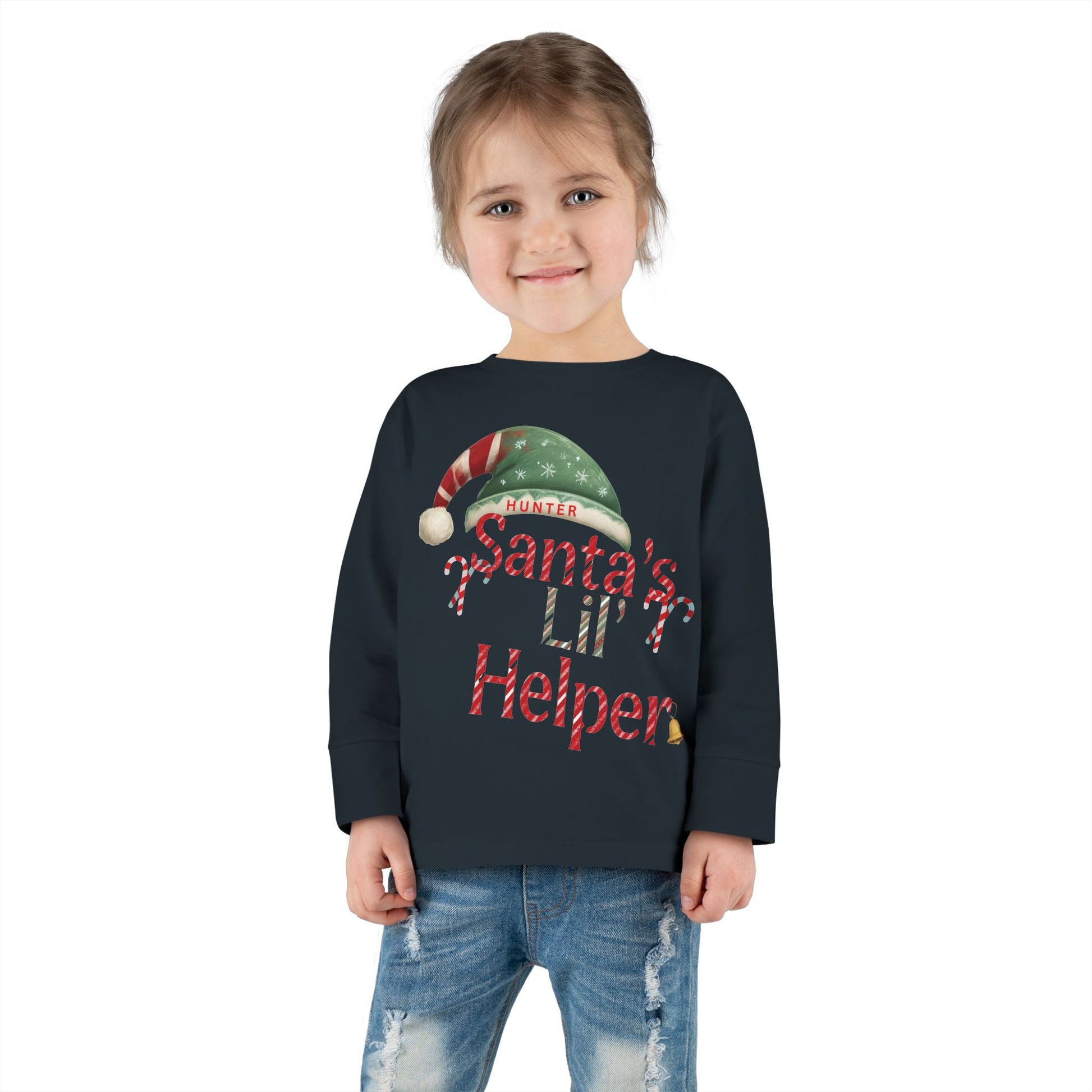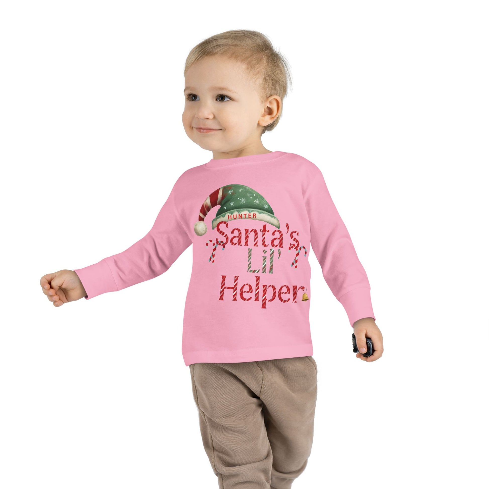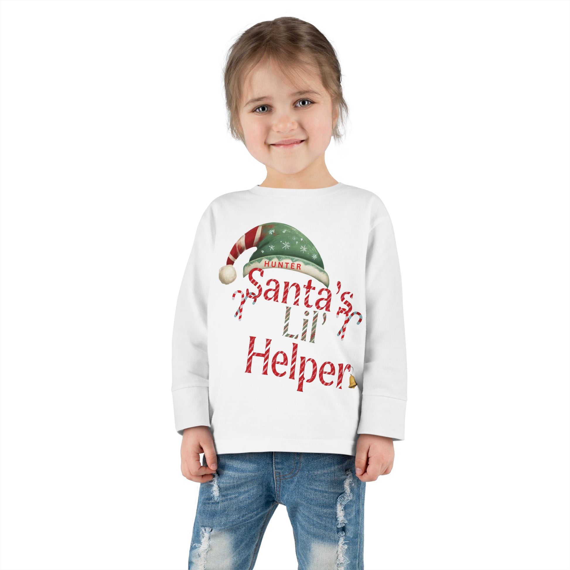 Personalized Toddler Christmas Long Sleeve Tee, Santa's Lil Helper, Holiday Gift, Kids' Winter Wear, Cute Toddler Apparel, Festive Shirt
