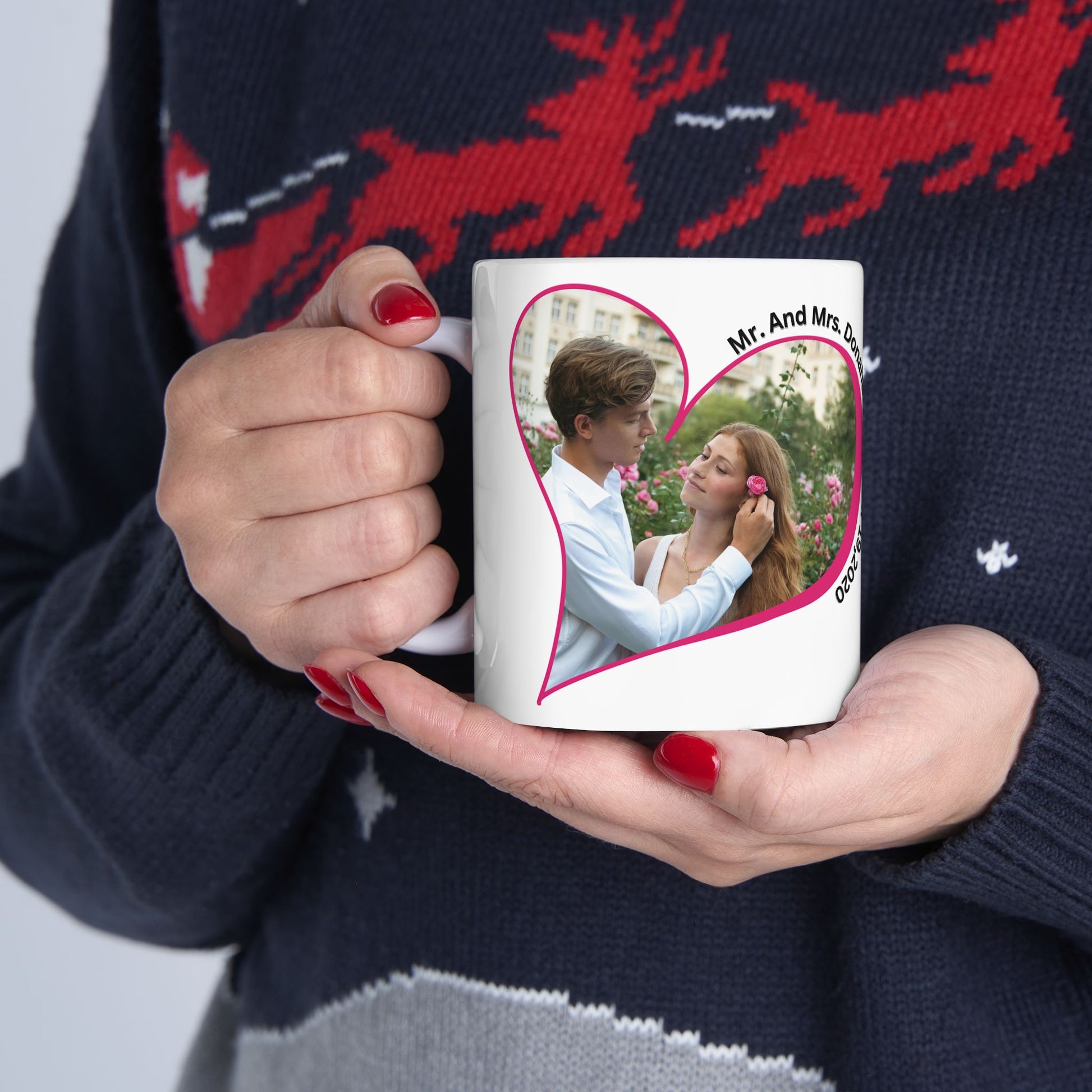 Personalized Wedding Anniversary Mug Custom Photo Heart Coffee Cup With Names and Date Keepsake Gift 11oz 15oz