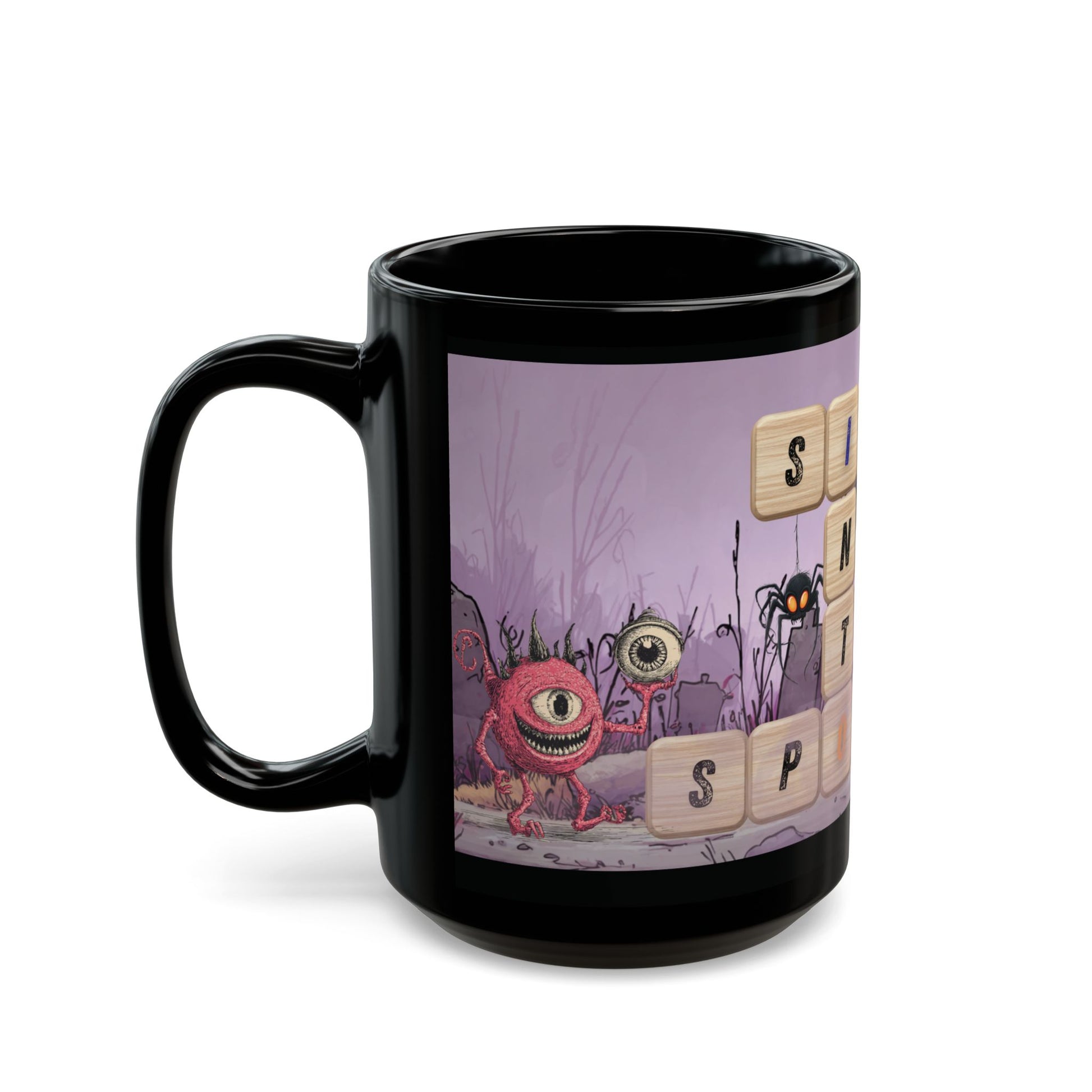 Sip Into Spooky Black Mug Halloween Coffee Cup Creepy Cute Ceramic Drinkware Gift for Fall Seasonal Tea Lovers 11oz 15oz