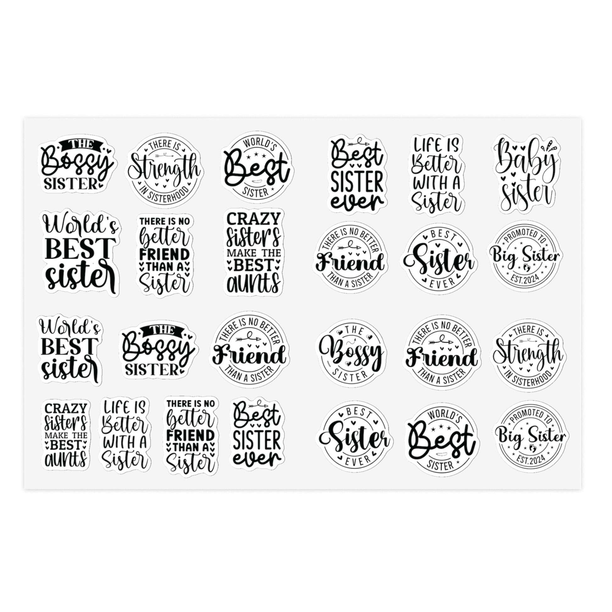Sisterhood Sticker Bundle | 5 Sheets (125 Stickers) | White, Transparent or Holographic | Big Sister, Little Sis, Best Sister Gift